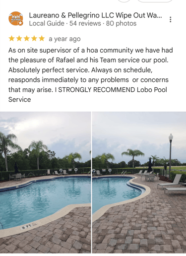 Lobo's Pool Service LLC is a family-owned company based in Kissimmee, Florida, with over 10 years of experience in professional pool maintenance. Founded by Rafael A. Lobo and Maria T. Moran, the business has built a strong reputation for reliability, punctuality, and attention to detail. They offer comprehensive pool cleaning, maintenance, and repair services, ensuring that every customer enjoys a clean, safe, and sparkling pool year-round. With a 5-star rating on platforms like Birdeye, clients consistently praise their efficiency, clear communication, and dedication to customer satisfaction. If you're looking for dependable and expert pool care in the Orlando/Kissimmee area, Lobo's Pool Service LLC is a top choice.